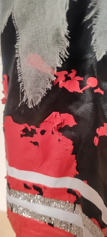 Šaty. Na sukni se odlupuje červený potisk, ale ničemu nevadí.