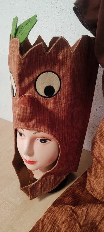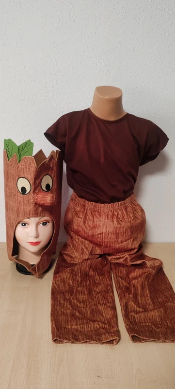 Kostým pařezu.  Kalhoty, triko a pokrývka hlavy.